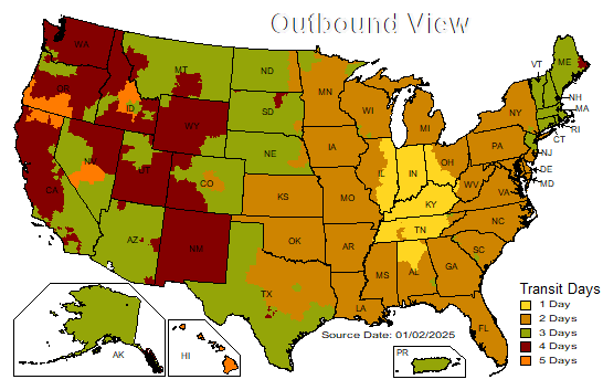 The transit times shown above only count business days – not Saturdays, Sundays, or Holidays.